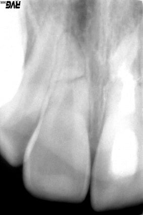 In dit geval waren de wortels van beide voortanden gebroken. De lange termijn prognose was dubieus.